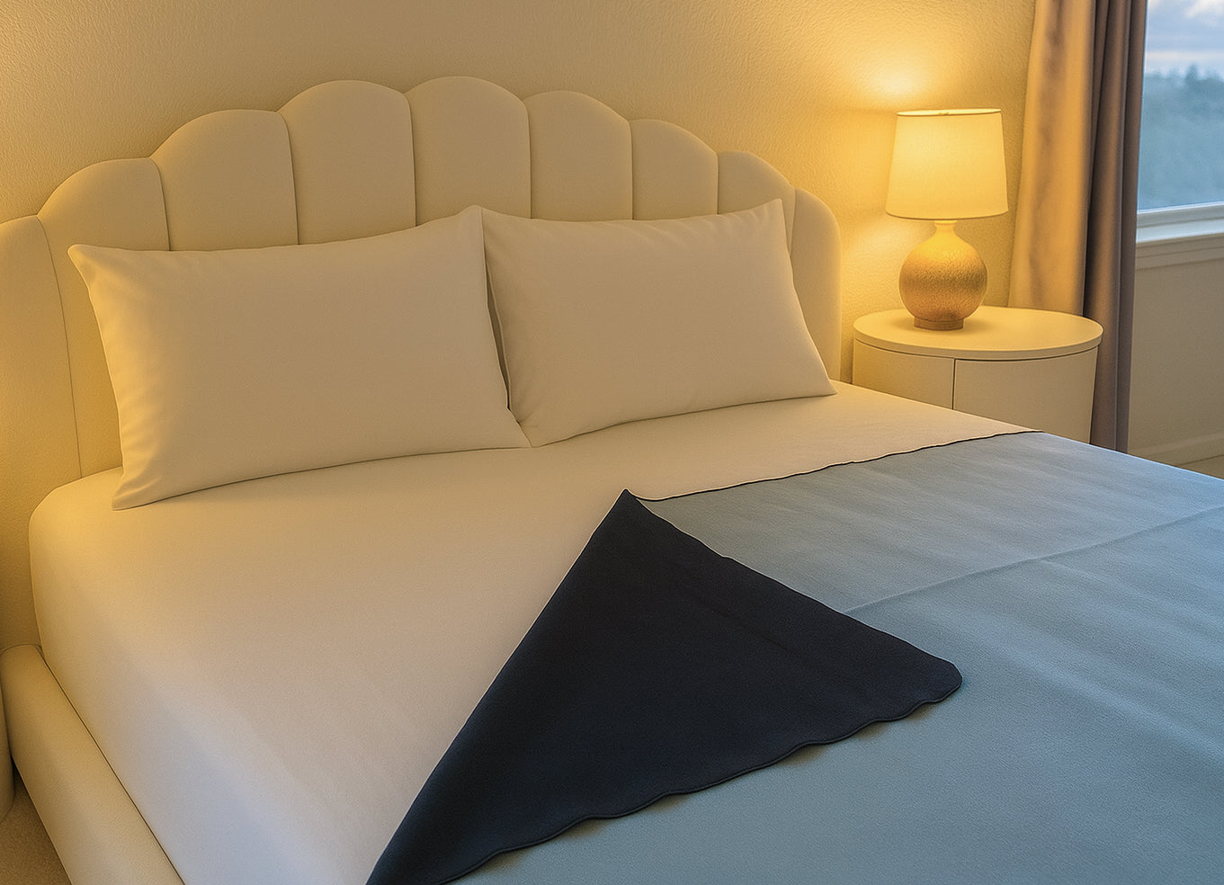 One side features breathable, USA-made organic cotton that feels soft and reassuring against the body. The other side uses our high-performance absorbent fabric, engineered with a fine, root-like structure that pulls liquid in quickly and disperses moisture without plastic, noise, or heat.
